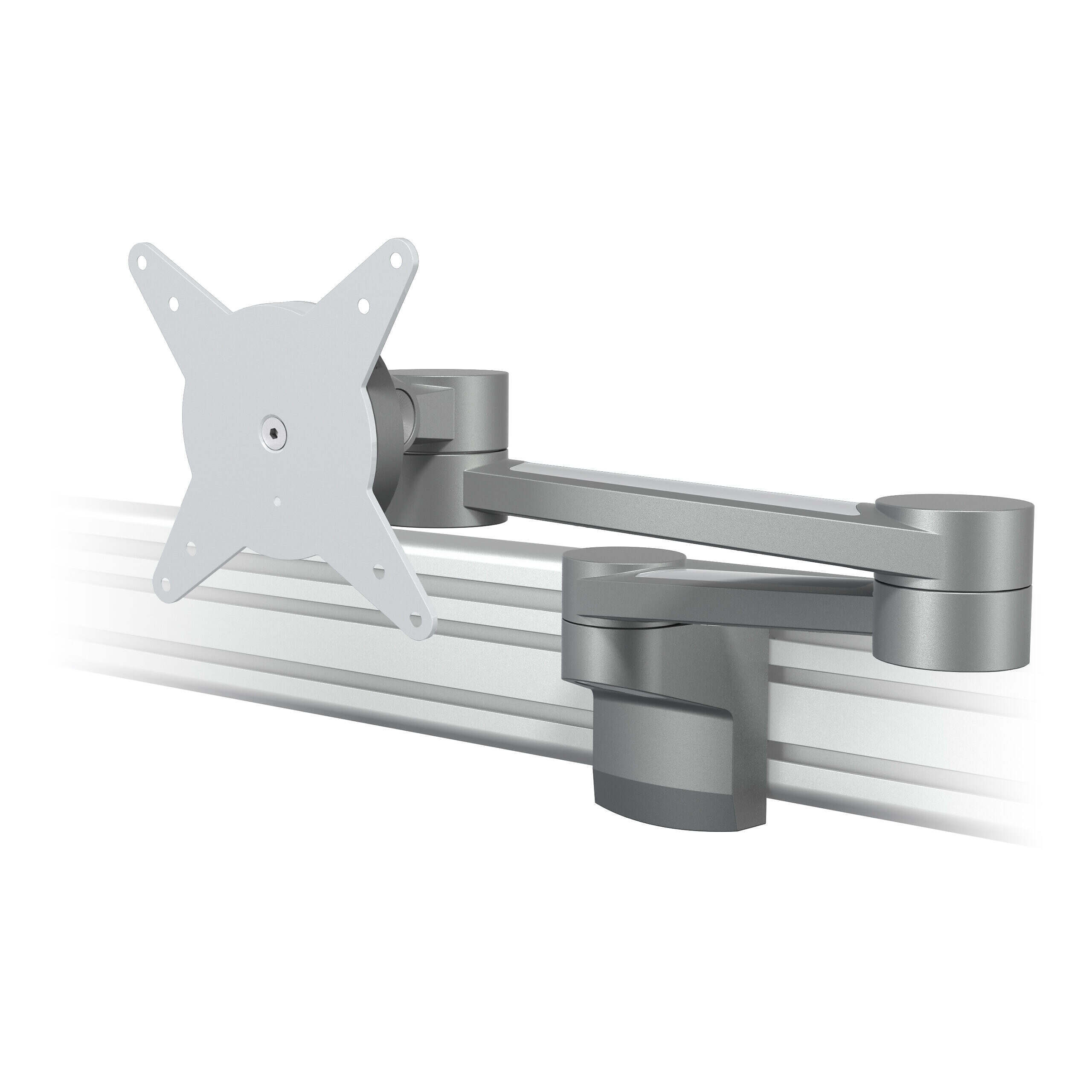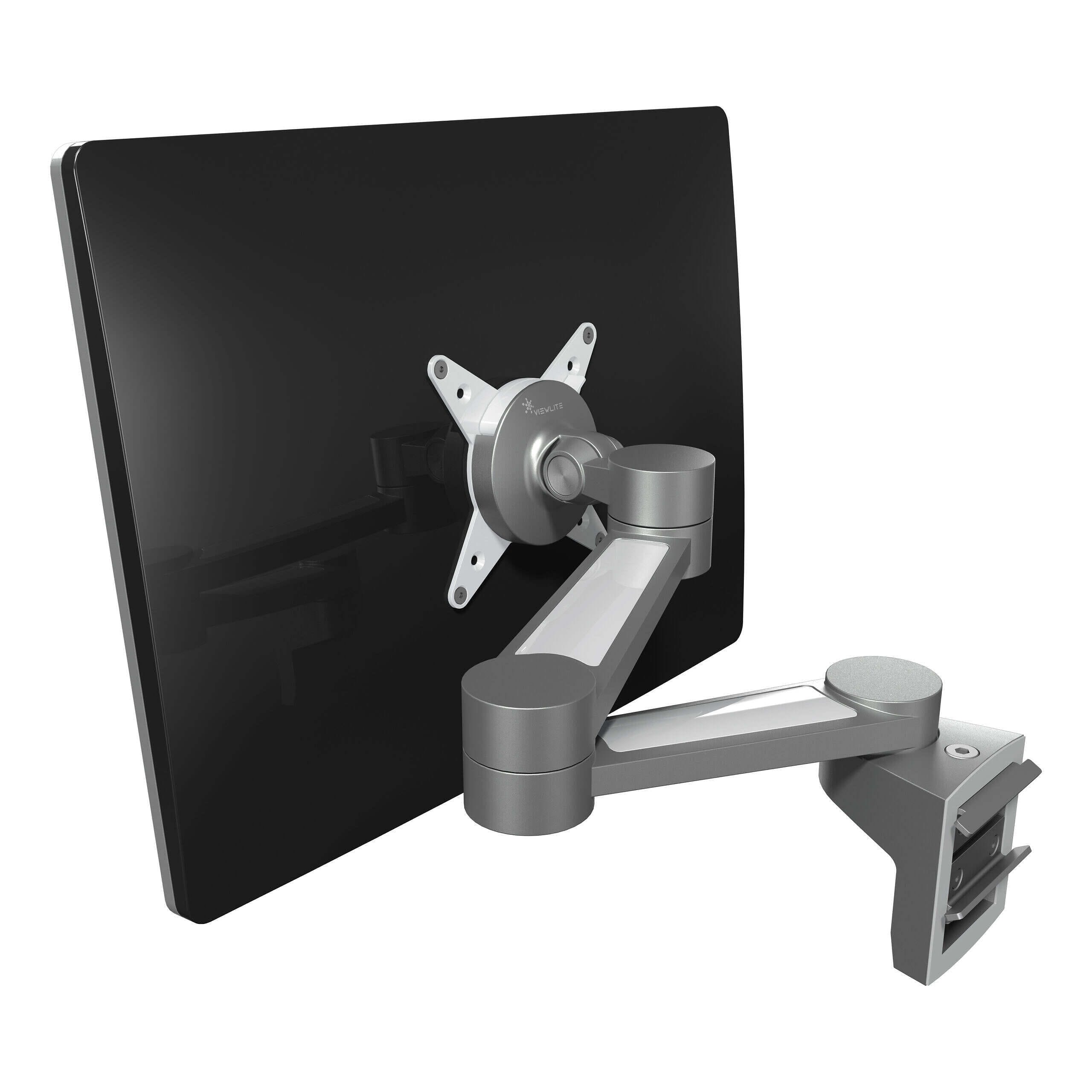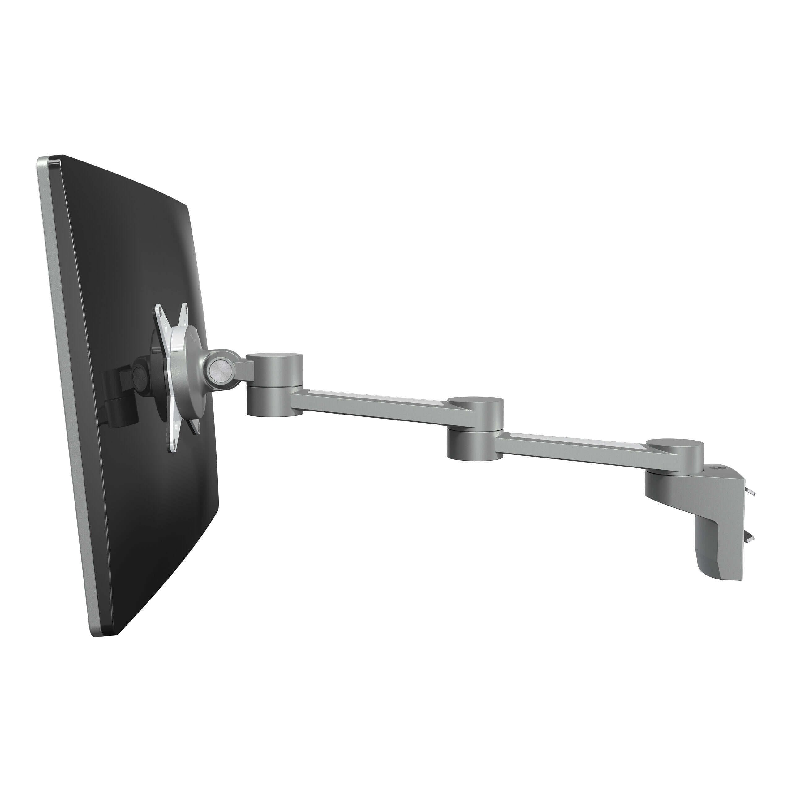 Machen Sie mit diesem an einer Schiene oder einem Schienensystem befestigten Monitorarm Arbeitsfläche auf dem Schreibtisch frei. Durch den zweifachen Ausleger ist der Monitor unabhängig tiefenverstellbar und damit ideal für breite Schreibtische. Mit der Schraube an der Oberseite lässt sich die Klemm-Mechanik fester oder loser einstellen. Kabel werden einfach in den Aluminiumauslegern des Arms verborgen, wodurch eine ordentlicher, professioneller Eindruck entsteht.
