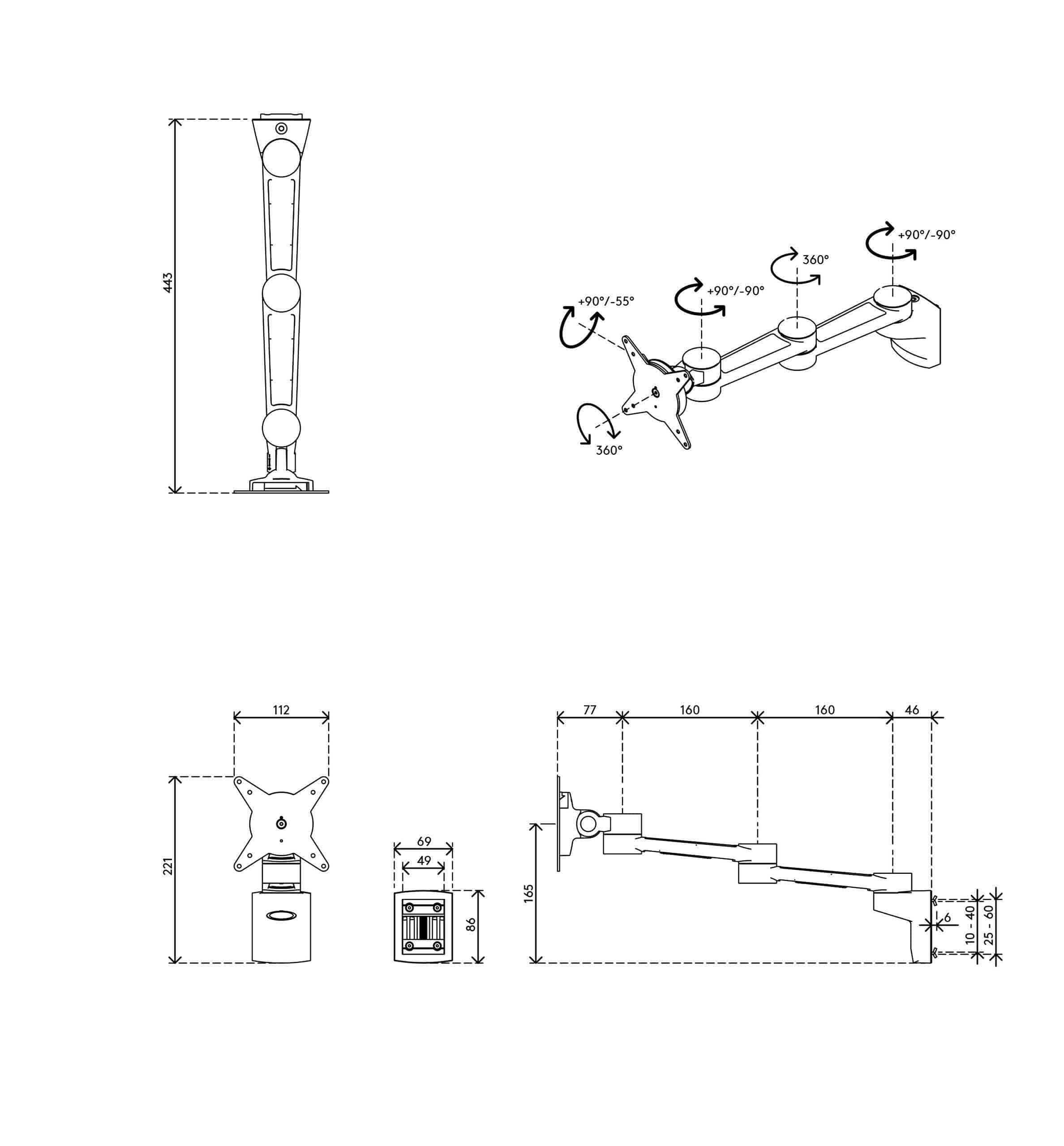 - Monitor: neigbar +90°/-55°, schwenkbar +90°/-90°, Drehbar 360°